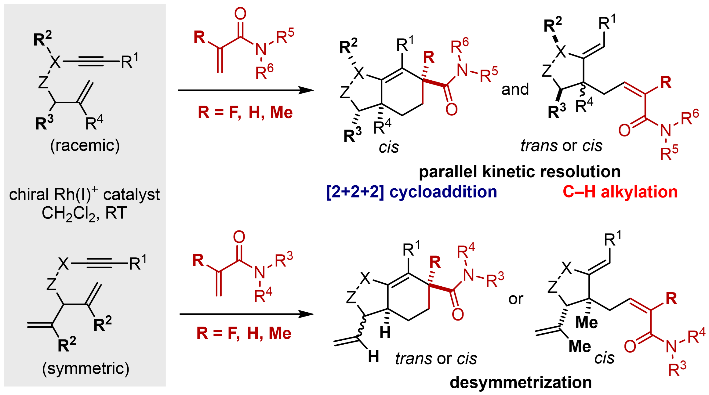 Rh-Catalyzed Chemodivergent Parallel Kinetic Resolutionand Desymmetrization of Enynes and Dienynes withAcrylamides